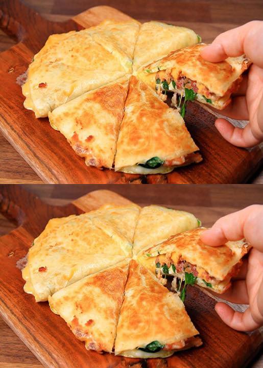 Riscalda una padella a fuoco basso/medio, aggiungi un goccio d’olio d’oliva e stendi bene.