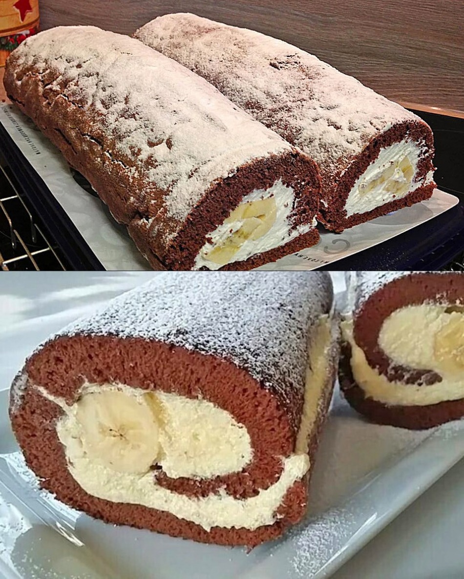 Fattore di dipendenza garantito: rotolo svizzero con banane, semplicemente incredibilmente delizioso.