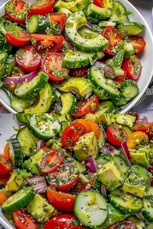 Fantastica insalata con avocado, pomodoro e cetriolo in 10 minuti