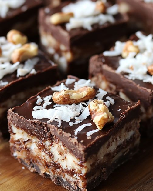 I quadrotti di fudge al cioccolato, cocco e noci sono una deliziosa delizia che riporta alla mente i ricordi delle riunioni di famiglia e dei pomeriggi intimi trascorsi in cucina. Questa ricetta combina i sapori ricchi e golosi del cioccolato e del cocco con la croccantezza delle noci, creando un dessert confortante e appagante. Questi quadrotti ricordano le semplici gioie della pasticceria del Midwest, dove ogni morso racconta una storia di tradizione e amore. Che li prepariate per un’occasione speciale o semplicemente per gustarli con una tazza di caffè, questi quadrotti di fudge diventeranno sicuramente i vostri preferiti.