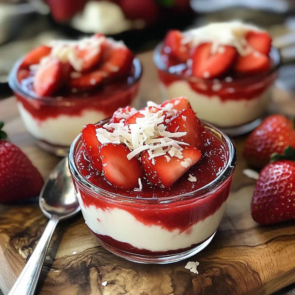 Un dessert cremoso con crema al mascarpone e quark, fragole fresche e una salsa di fragole fruttata. Facile da preparare e sempre una delizia.