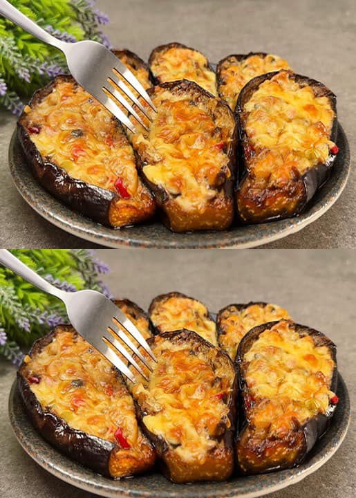 Lavare bene le melanzane, tagliare le estremità (i gambi) e dividerle a metà orizzontalmente. Praticare dei piccoli tagli a reticolo nella polpa (come nell’immagine sotto). Mettere da parte.