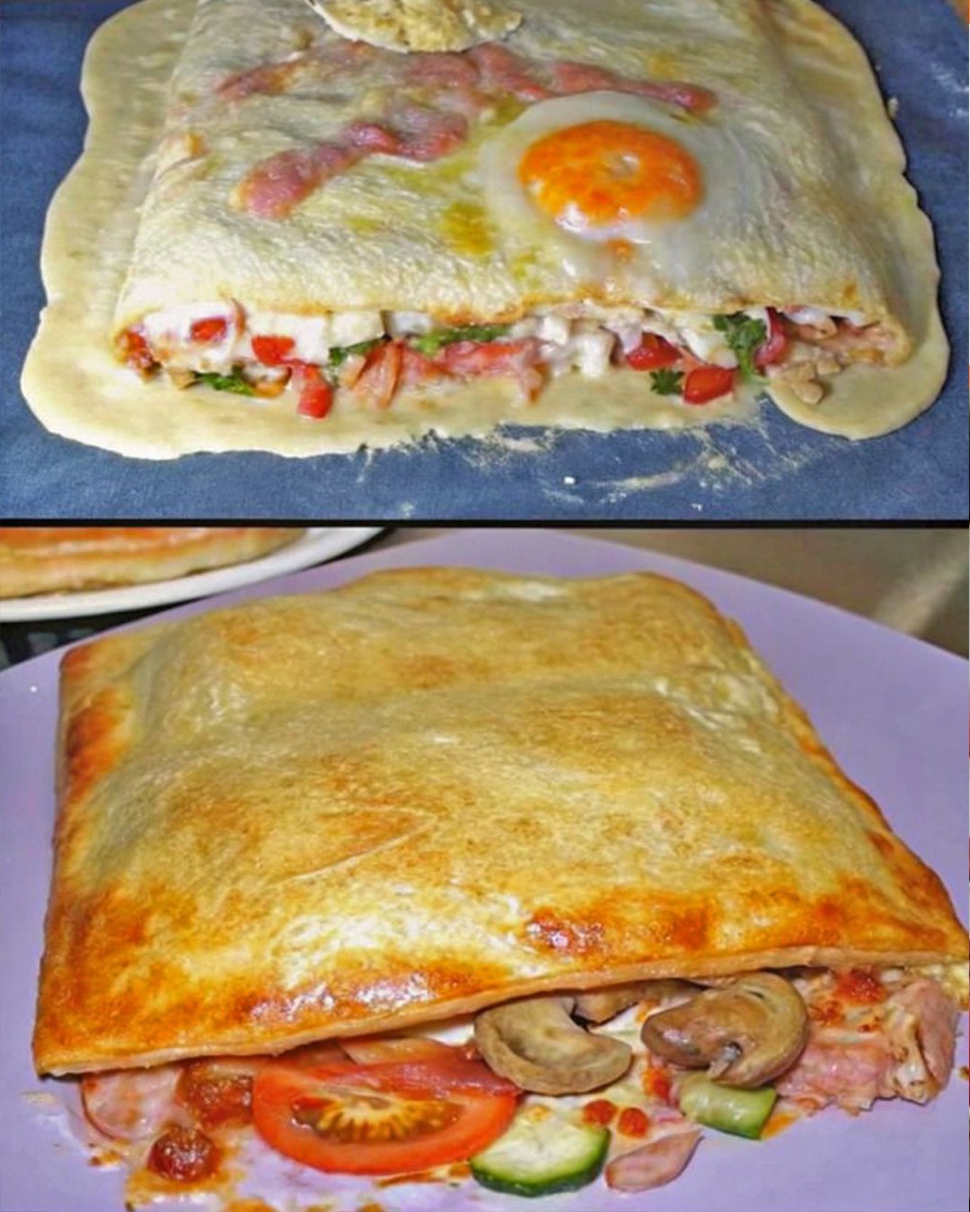 Questo calzone di pasta sfoglia è semplicemente paradisiaco! Con un delizioso ripieno di peperoni, pomodori, prosciutto, salame e formaggio: lo spuntino perfetto o il piatto principale!