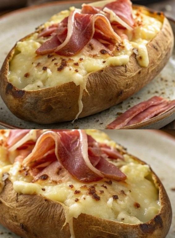 3. Nel frattempo, tagliare il formaggio Raclette a fette e il prosciutto crudo a pezzetti.