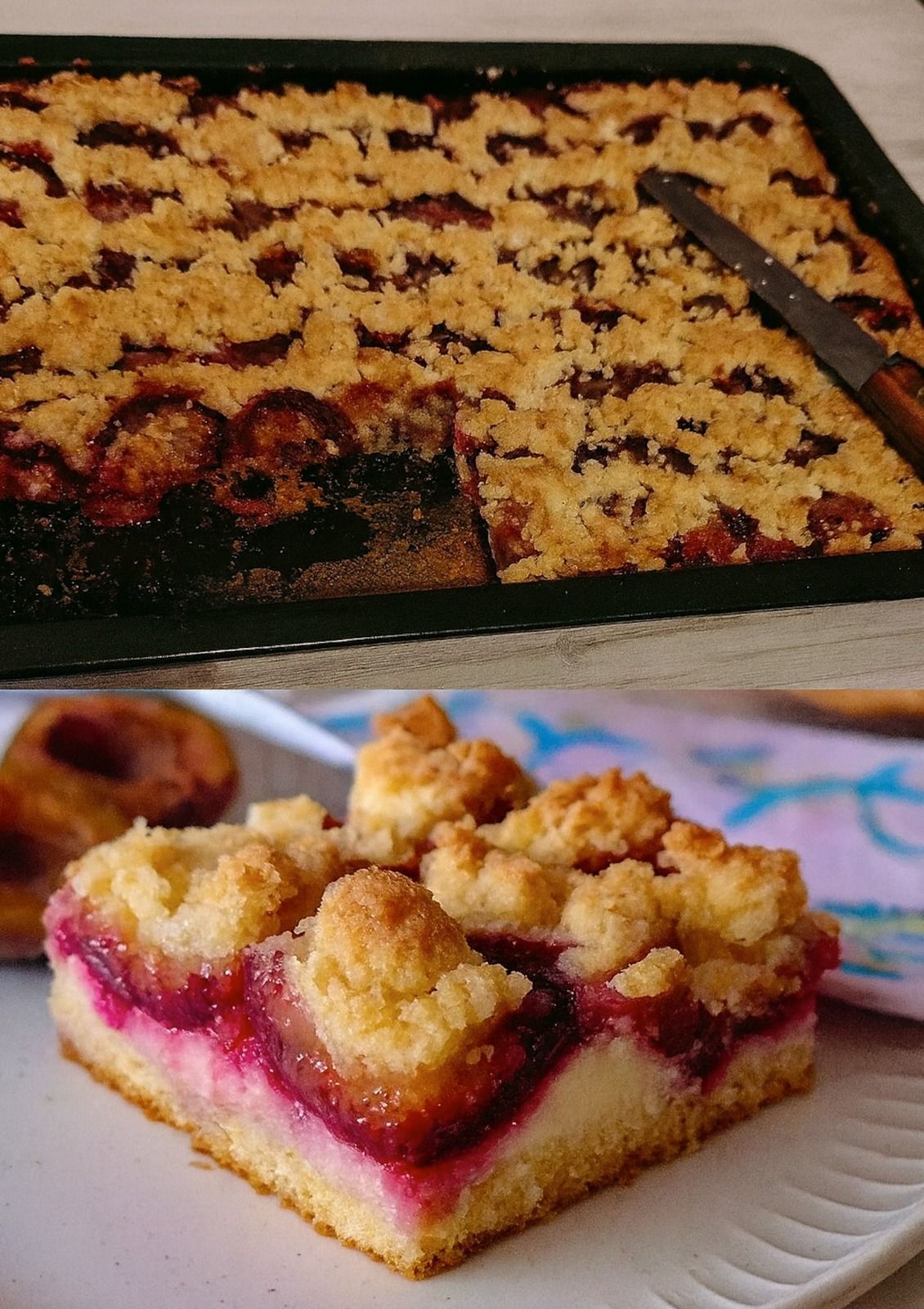 Il plumcake è una vera delizia e un must assoluto durante la stagione delle prugne. Con la sua pasta frolla umida, resa particolarmente tenera dalla combinazione di burro, zucchero e crema pasticcera, è la base perfetta per le deliziose prugne, che non solo aggiungono sapore alla torta, ma le conferiscono anche una nota fresca e fruttata. Ma la parte migliore di questa torta è senza dubbio la copertura sbriciolata: fatta di farina, burro, zucchero e cannella, forma una crosta dorata e croccante che conferisce alla torta una consistenza meravigliosa. Le prugne, distribuite sulla pasta frolla, sprigionano tutto il loro sapore durante la cottura e diventano un ripieno dolce e umido che si armonizza meravigliosamente con la copertura sbriciolata. Questa combinazione rende il plumcake non solo una delizia per gli occhi, ma anche una vera esperienza di gusto.