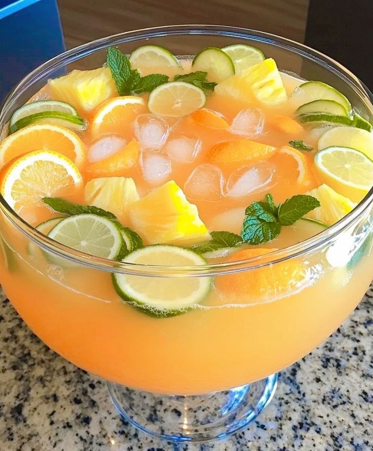 In una grande ciotola da punch o in un dispenser per bevande, unire: