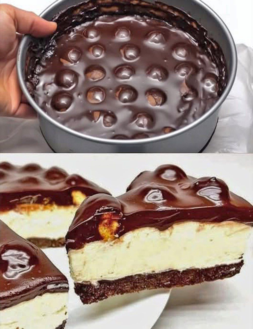 Lascia riposare in frigorifero e poi ricopri con la glassa al cioccolato.